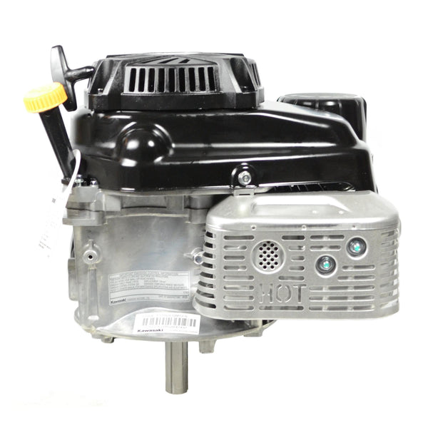 Kawasaki FJ180V-M17-S Vertical 179cc Single Cylinder OHV KAI Series Engine, 63/64" x 3-5/32" Crankshaft, 3/16" Keyway, Blade Brake Installed, 7/16"-20 Blade Bolt, Canister Style Dual Element Air Filter, No Fuel Tank, Cast Iron Cylinder Sleeve, Recoil Start with 86" Rope, Fixed Speed
